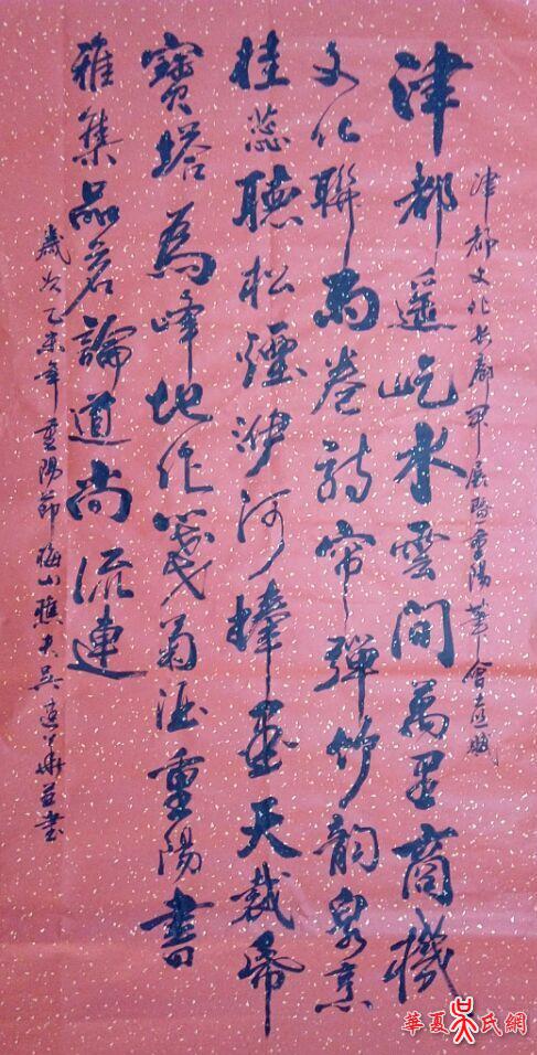 安化津都文化長廊開展暨重陽筆會喜賦津都遙屹水雲間,萬裏商機文化聯。雨卷詩聯彈竹韻,泉烹桂蕊聽松煙。ズ優跄天裁紙,寶塔爲鋒地作箋。菊酒重陽書雅集,品茗論道尚流連。湘益 梅山樵夫 吳建華2015-10-18- 于長沙 ...了解詳情+